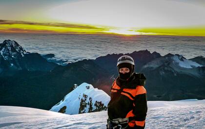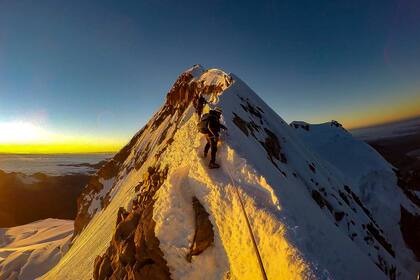 Mi cuerpo empezó a enloquecerse, el sudor se congelaba, sentía el frío debajo de las pieles. Me sentía pesada y caminar a buen ritmo con el guía y mi cordada me fatigaba.A 5900 m no sentía los dedos de mis pies, el frío los durmió, como la anestesia local que usan los odontólogo. Sólo pensaba que los estaba perdiendo y subir así era otro reto. Eran las 5.30 de la mañana y aún faltaba camino por ascender. En medida 188 metros parecían poco pero era bastante largo y ante mis ojos, peligroso. El camino cada vez perdía más centímetros de espacio. Tenía que poner un pie delante del otro. Mi distracción era el amanecer que se veía encima de las nubes y el cielo azul, pero ya estando cerca sólo quedaba la valentía de agarrarse del piolet (similar a un martillo pero con un ancla) y mirar al frente.