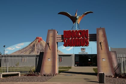 Es un pequeño oasis en medio del desierto y de los campos de petróleo. Una hilera de banderas pone colores vivos sobre el ocre mineral del paisaje, al costado de un par de hangares. Juan Mansilla da la bienvenida a los visitantes. Es técnico y trabaja con el paleontólogo Carlos Calvo, el primero en radicarse en Neuquén en 1987. Entre conferencias y cursos, no suele estar con frecuencia en este lugar que ideó para que el visitante de un salto de cien millones de años en apenas horas.